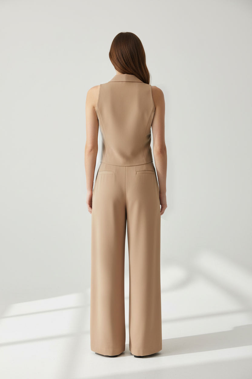 Designed for a sharp and modern look, this single-breasted lapel waistcoat comes in a cropped, slim-fit silhouette that lies flat with ease. Crafted from smooth crepe fabric, it brings a polished finish to any outfit – from tailored trousers to high-waist skirts or denim. A versatile layering piece that effortlessly blends contemporary style with classic tailoring.