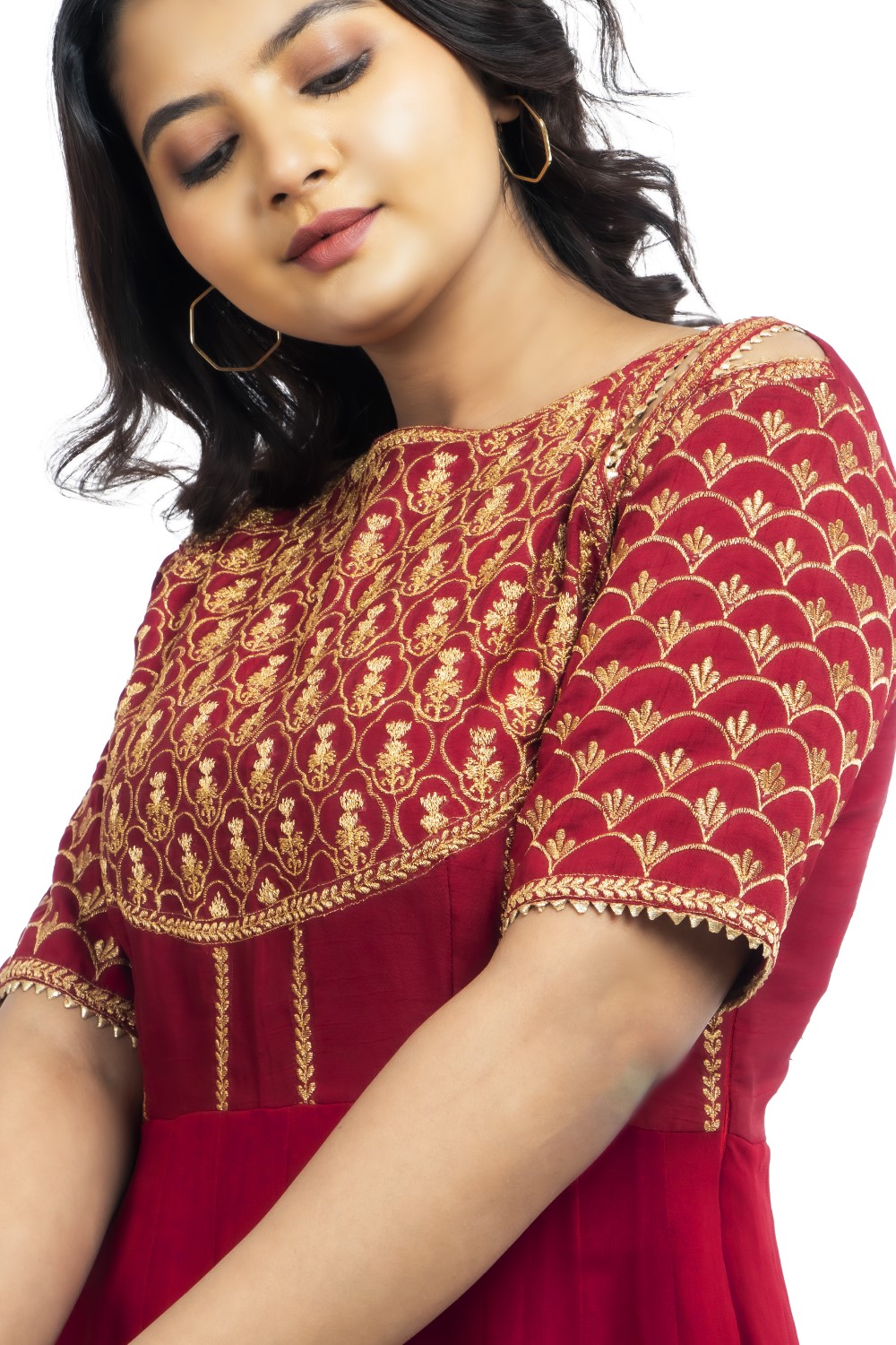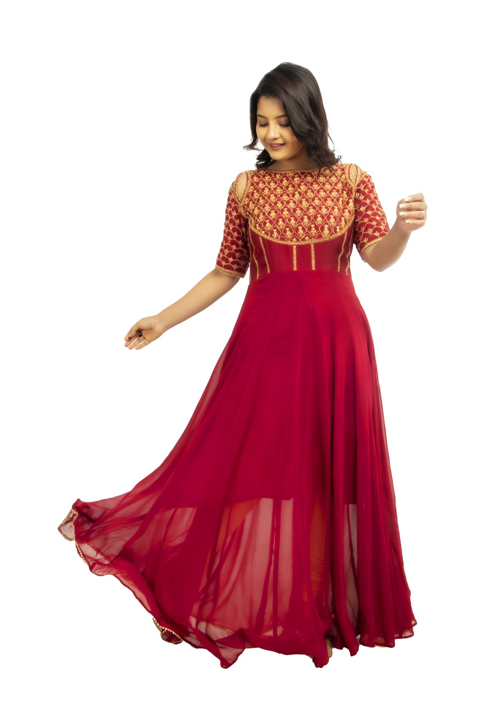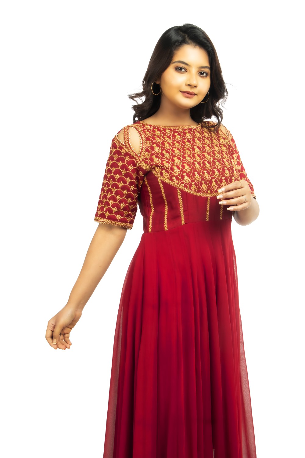 Look like an absolute diva with this festive wear from Zariah. This gorgeous gown in the color Maroon makes it impeccably chic.