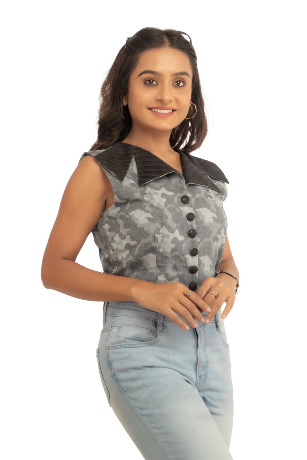 Get this Cut out embroidery crop top from our collection Zariah. This is Ice-Blue top is perfect for...