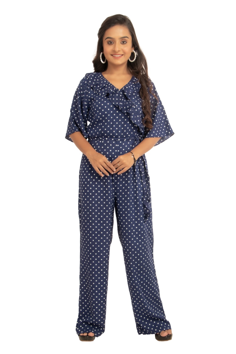Get this holiday wear with cute ruffle and polka print from zariah.