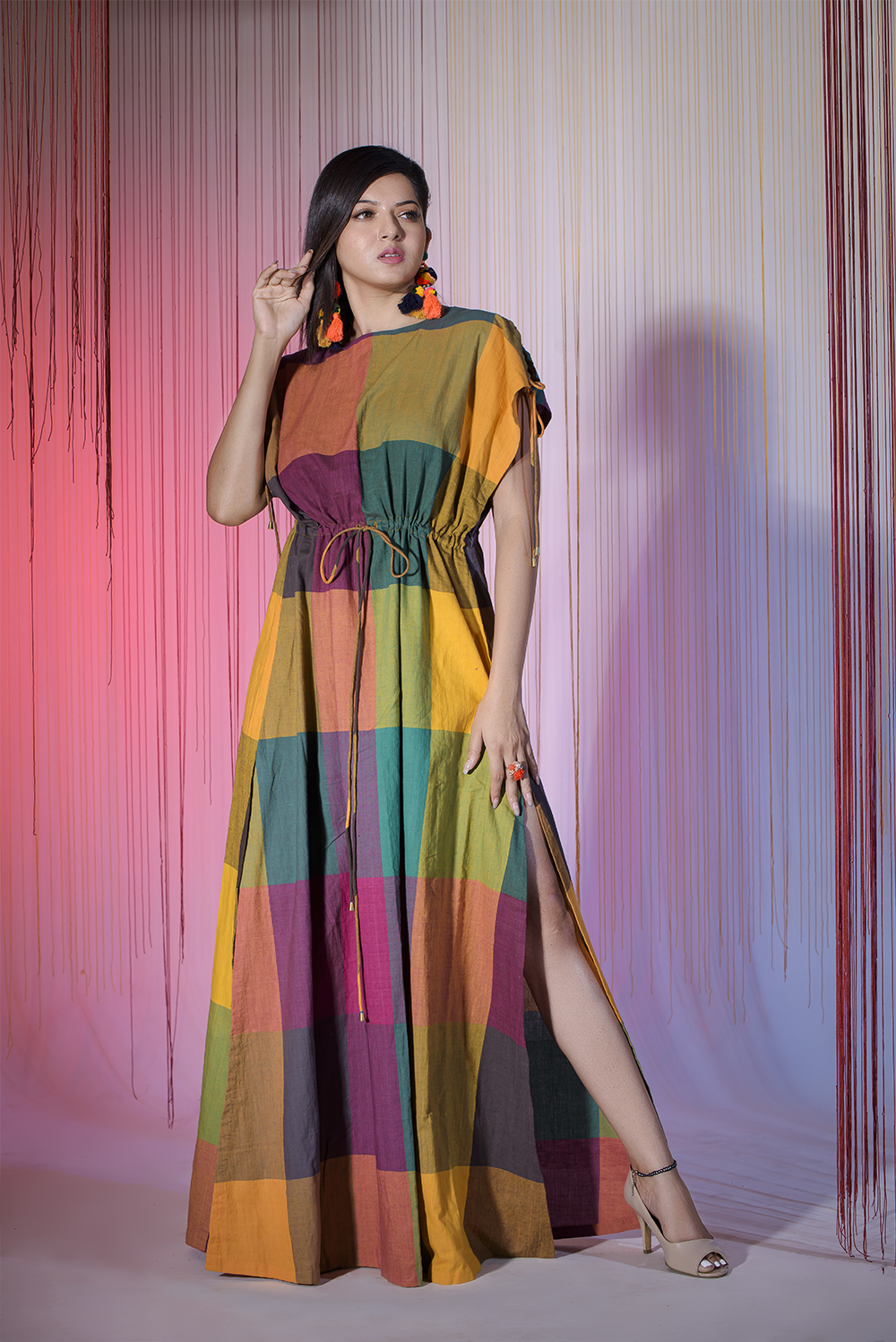 A handloom cotton high thigh shit kaftan from Zariah is an essential summer wear for your wardrobe c...