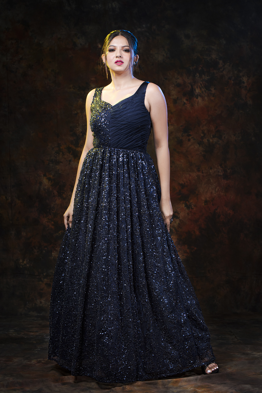 Make yourself look like an absolute diva with this lavish midnight blue gown form Zariah. This gorge...