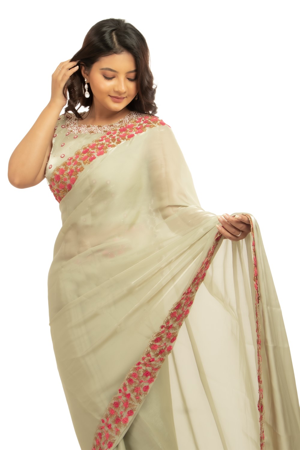 You cannot miss to hop on trend of organza saree & blouse set.