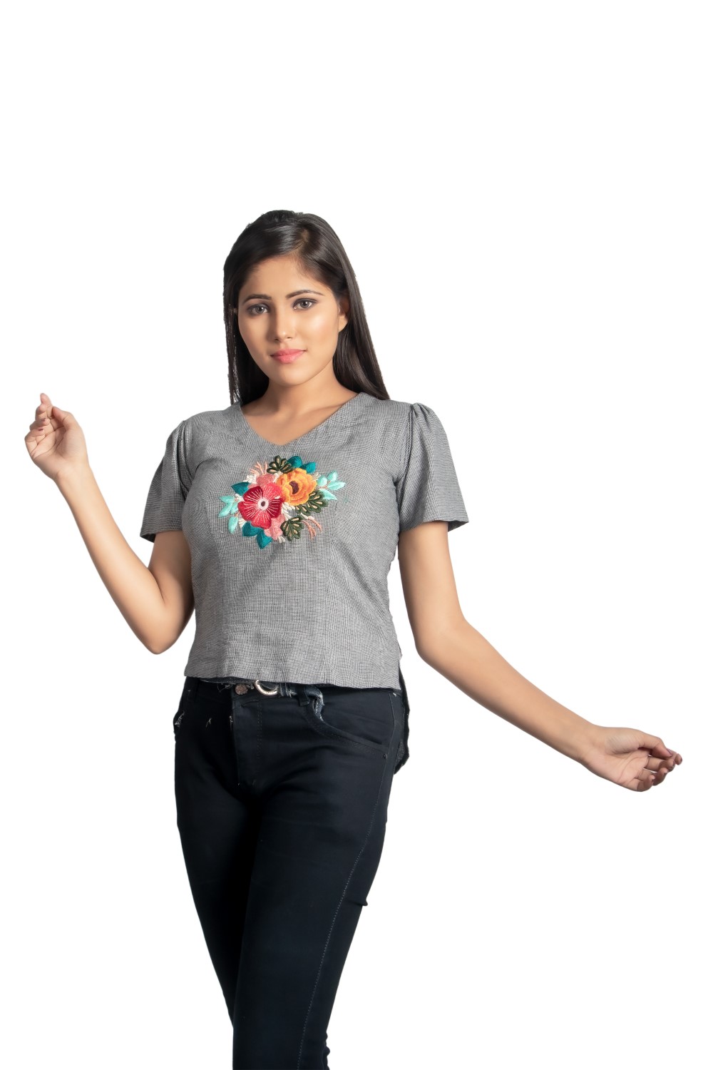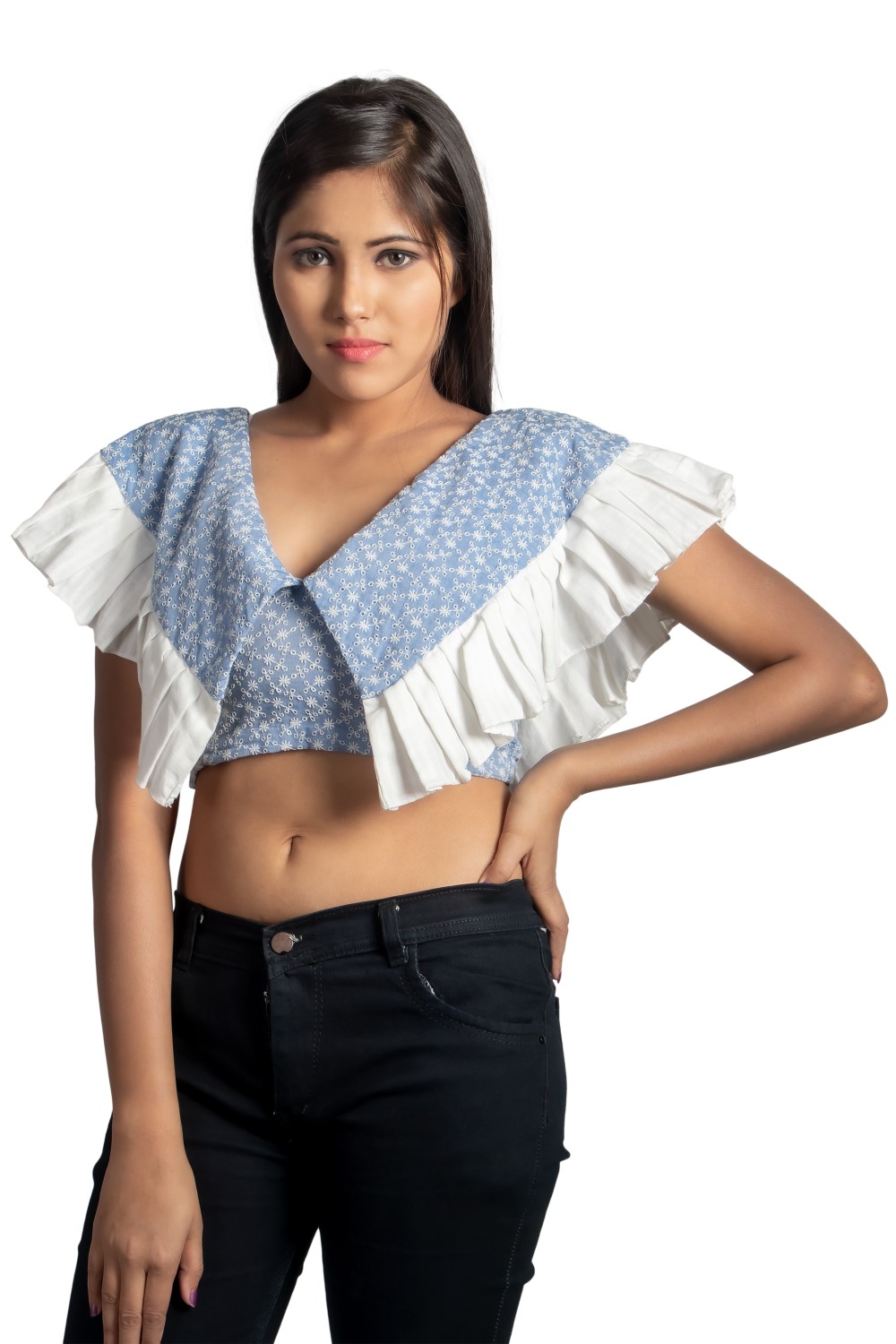 Get this Cut out embroidery crop top from our collection Zariah. This is Ice-Blue top is perfect for...