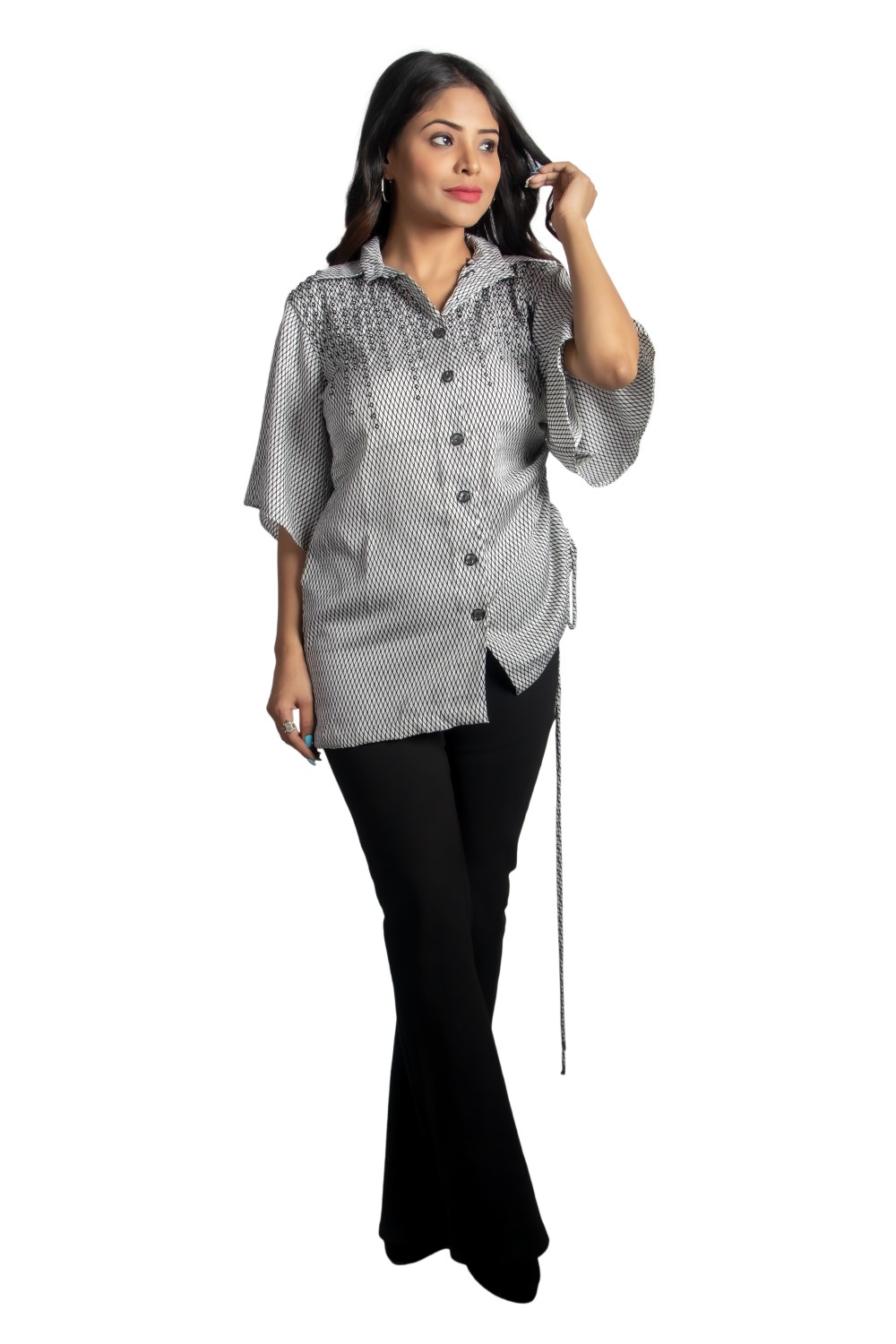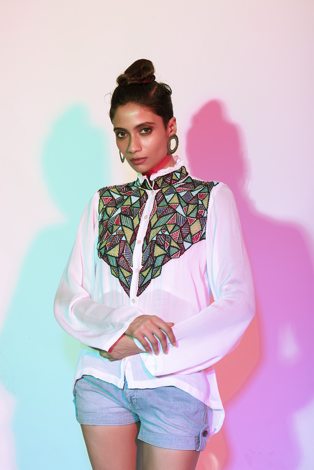 Enjoy your casual look with this embroidered monochromatic shirt from Zariah
