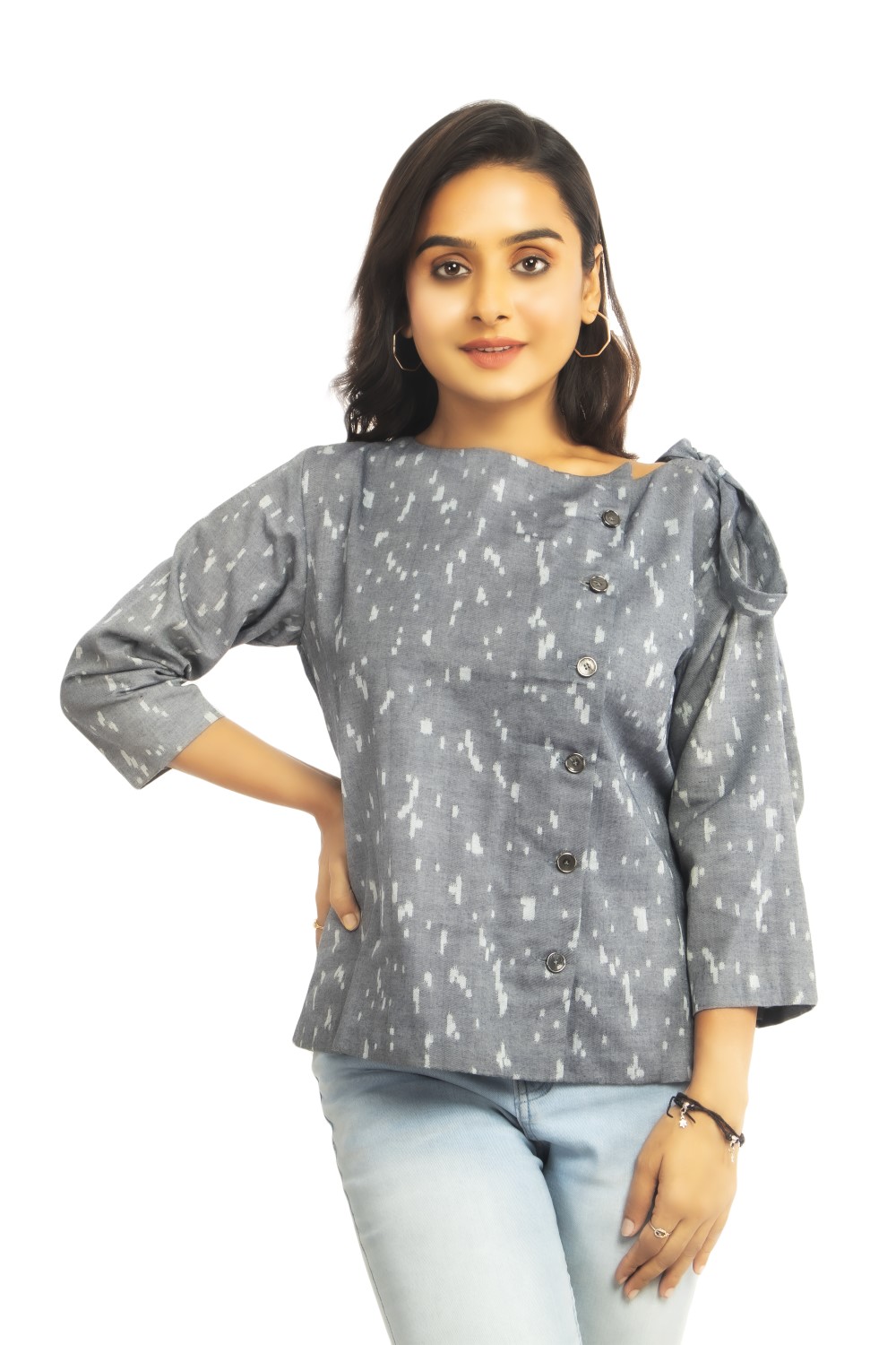 Get this breathable and light fabric top that flaunts an asymmetrical hemline from Zariah.