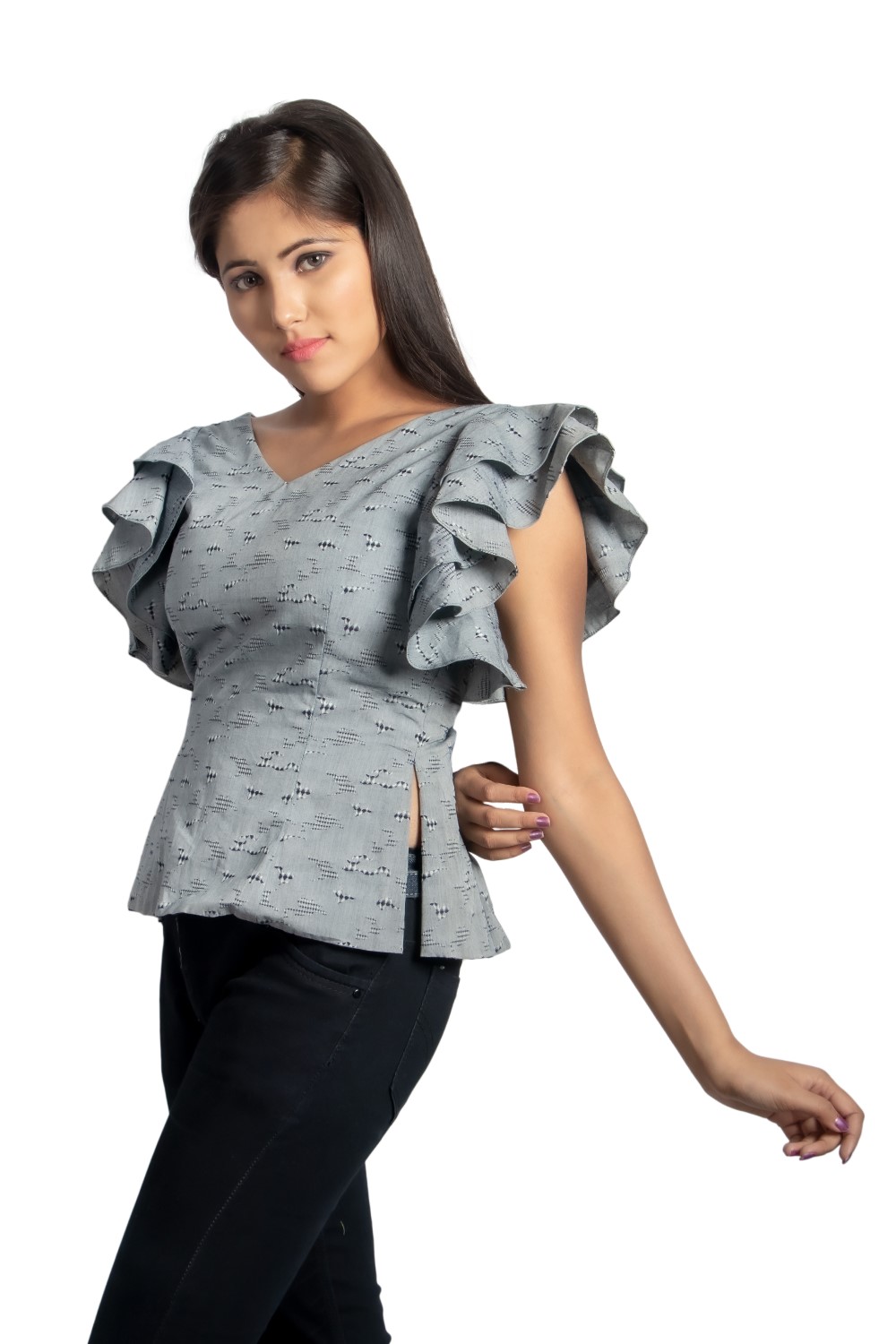 Make your evening more stylish with this simple yet sophisticated top with slit on sleeves.