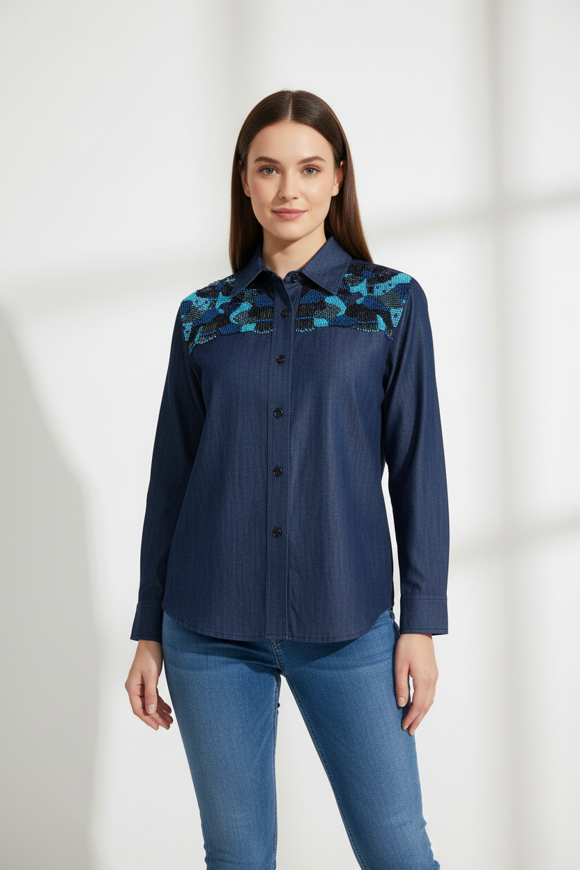 Casual, comfortable, and effortlessly stylish — this boxy loose-fit shirt is made from soft denim fa...