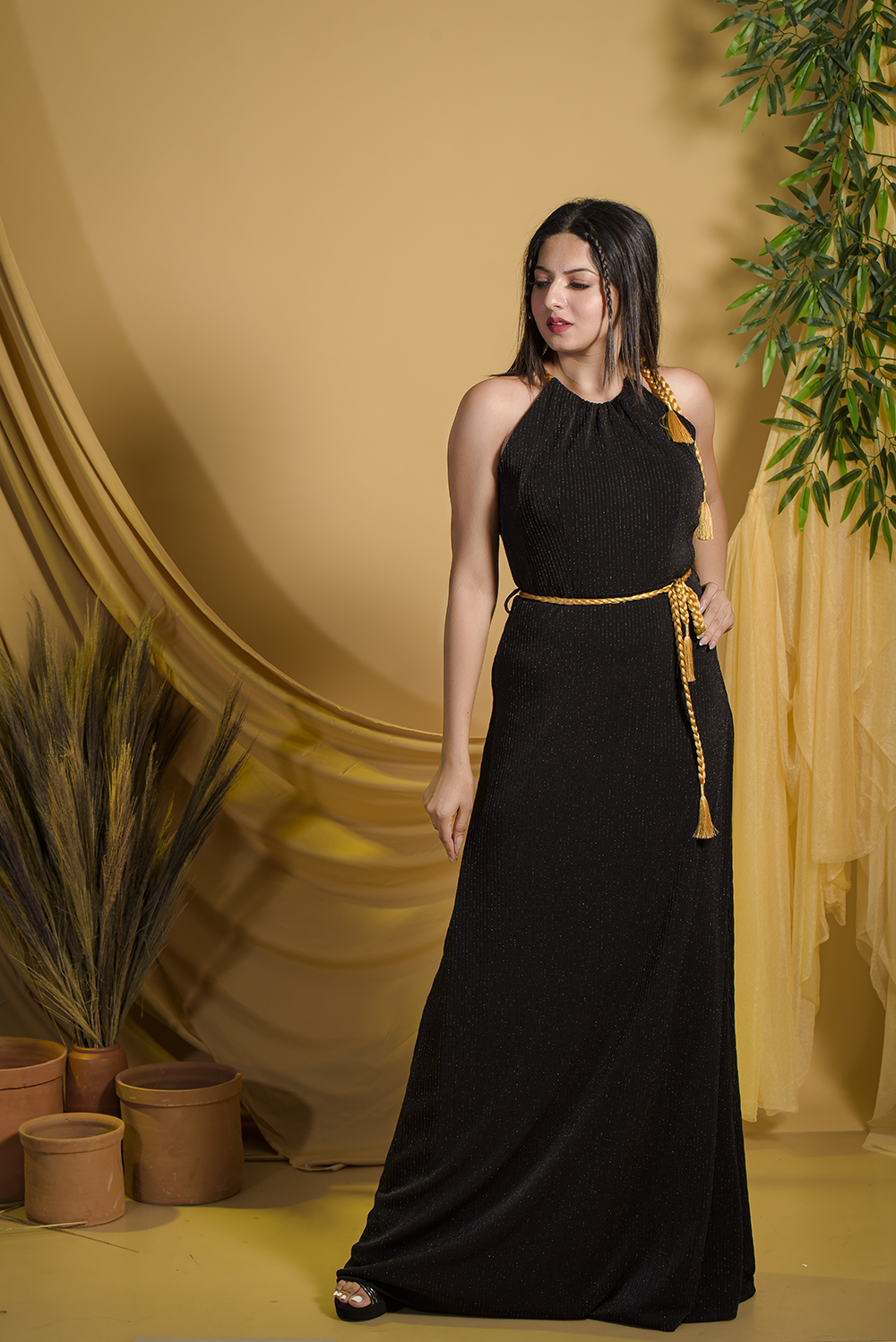 Get this refreshing addition to your collection in this halter neck gown from Eleanor made of black...