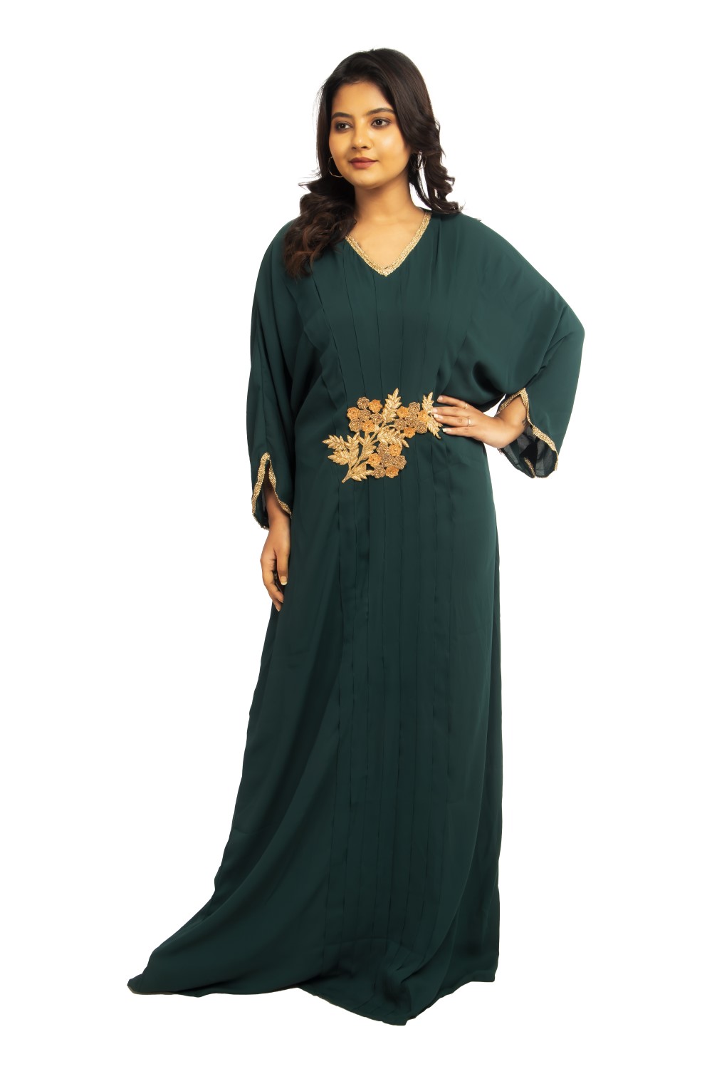 Look Sophisticated lady at the next weekend party with this solid color bottle green kaftan dress.