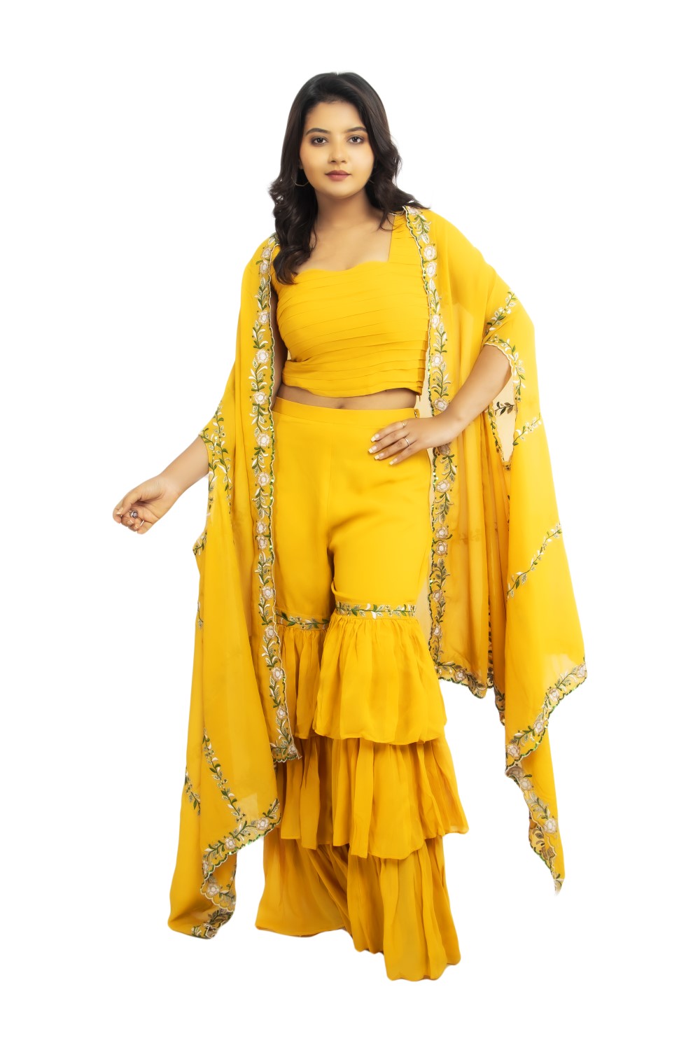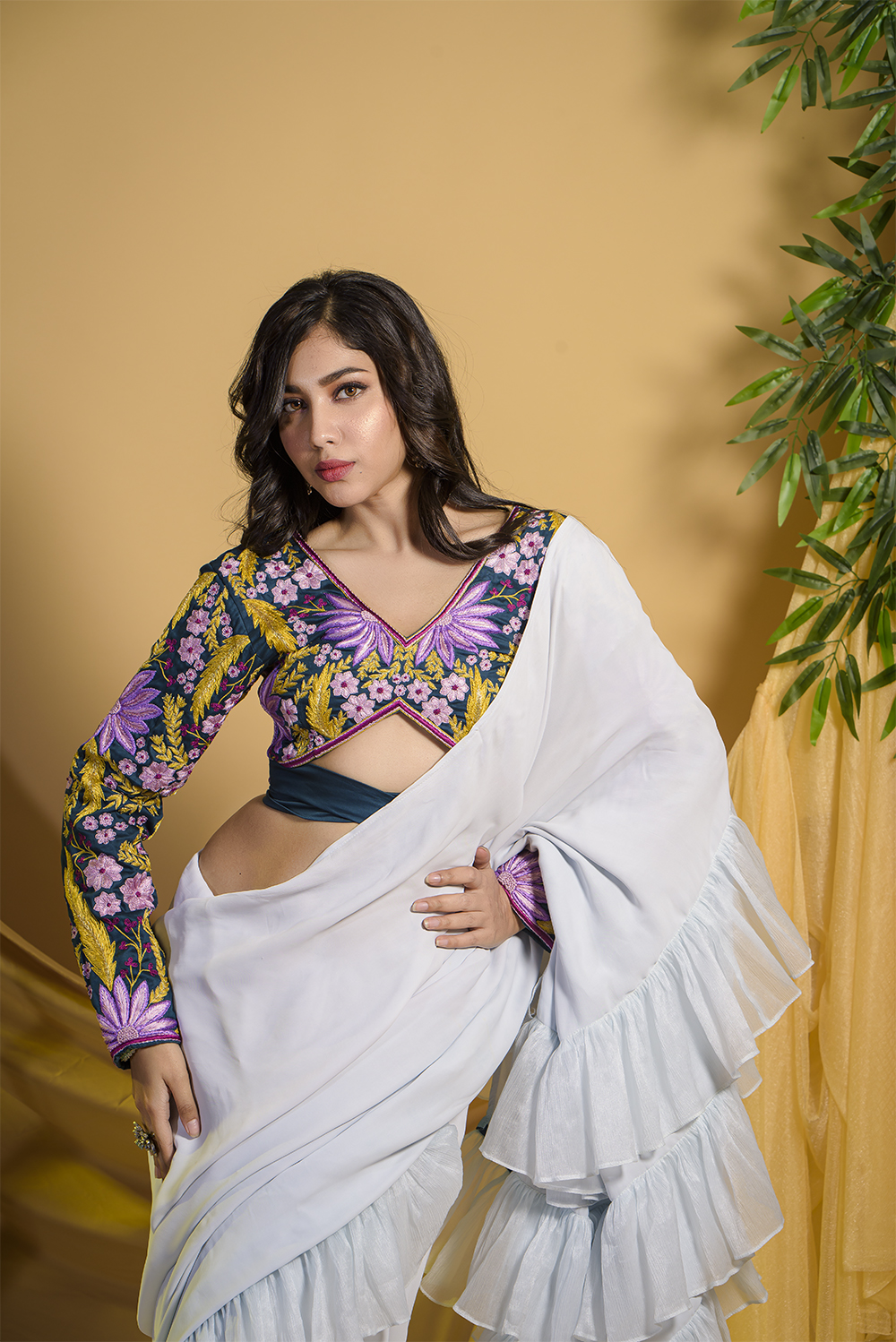 Break the rule of traditional saree look with this gorgeous ruffle saree from Zariah. This saree fro...