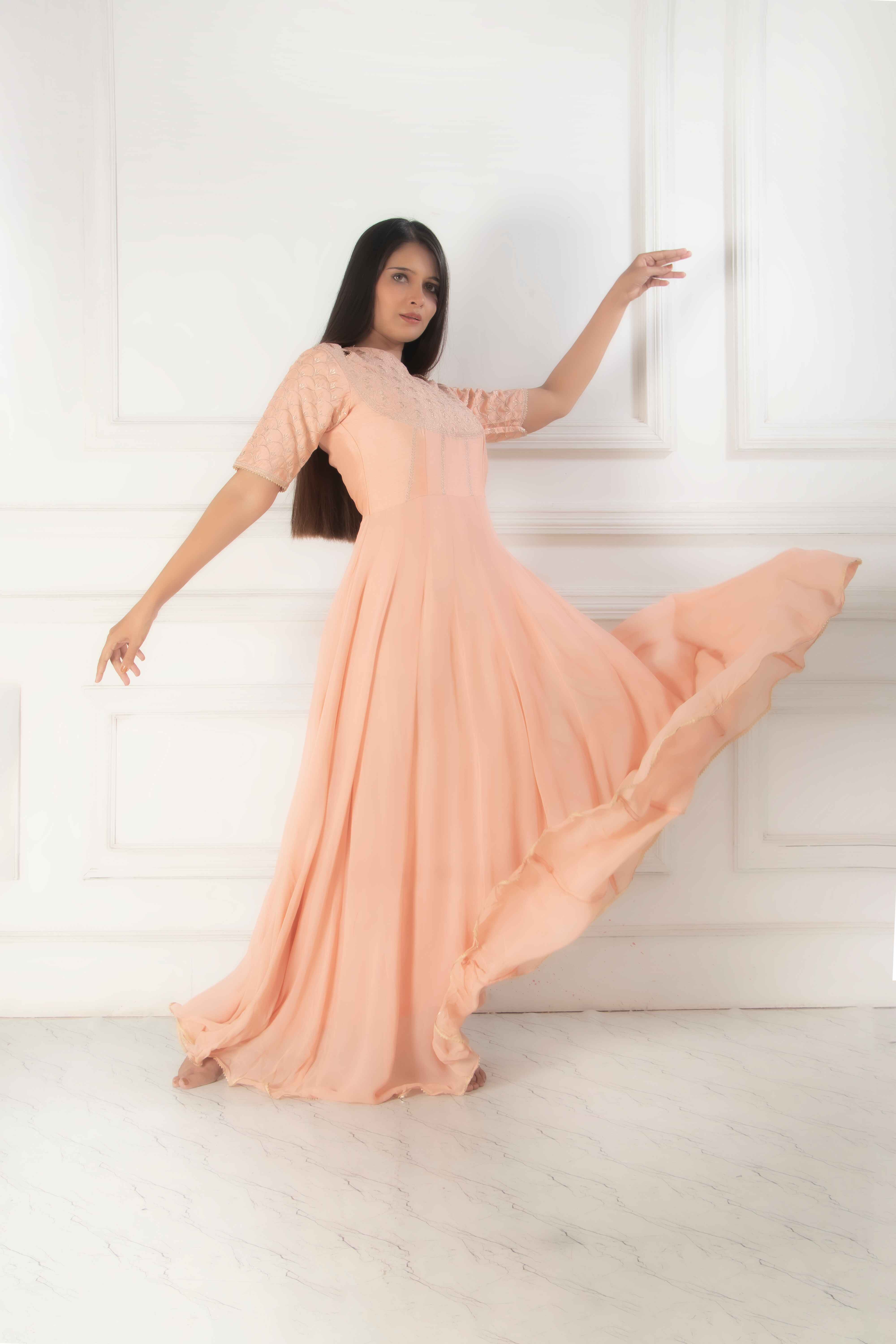 Look like an absolute diva with this festive wear from Zariah. This gorgeous gown in the color Peach...
