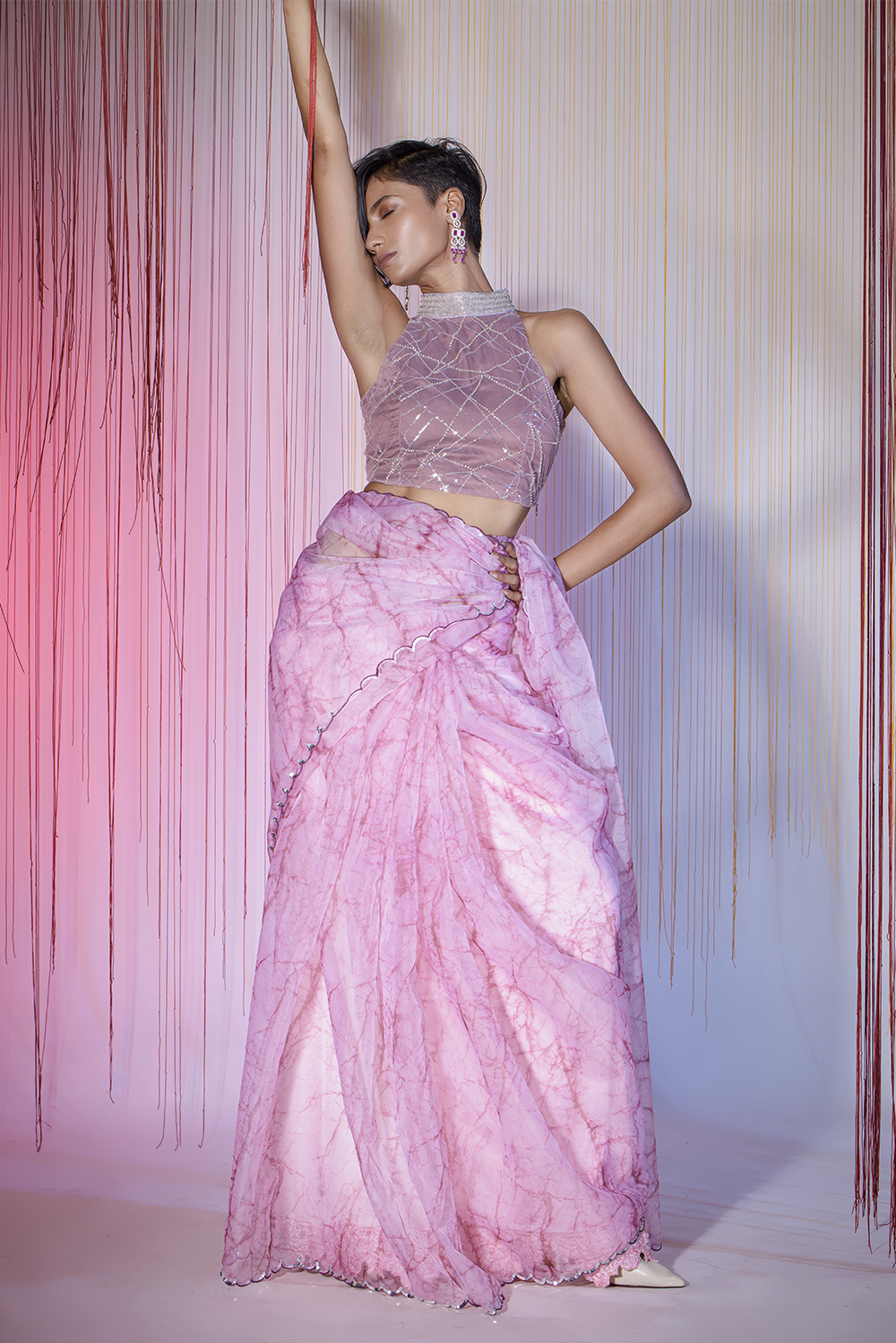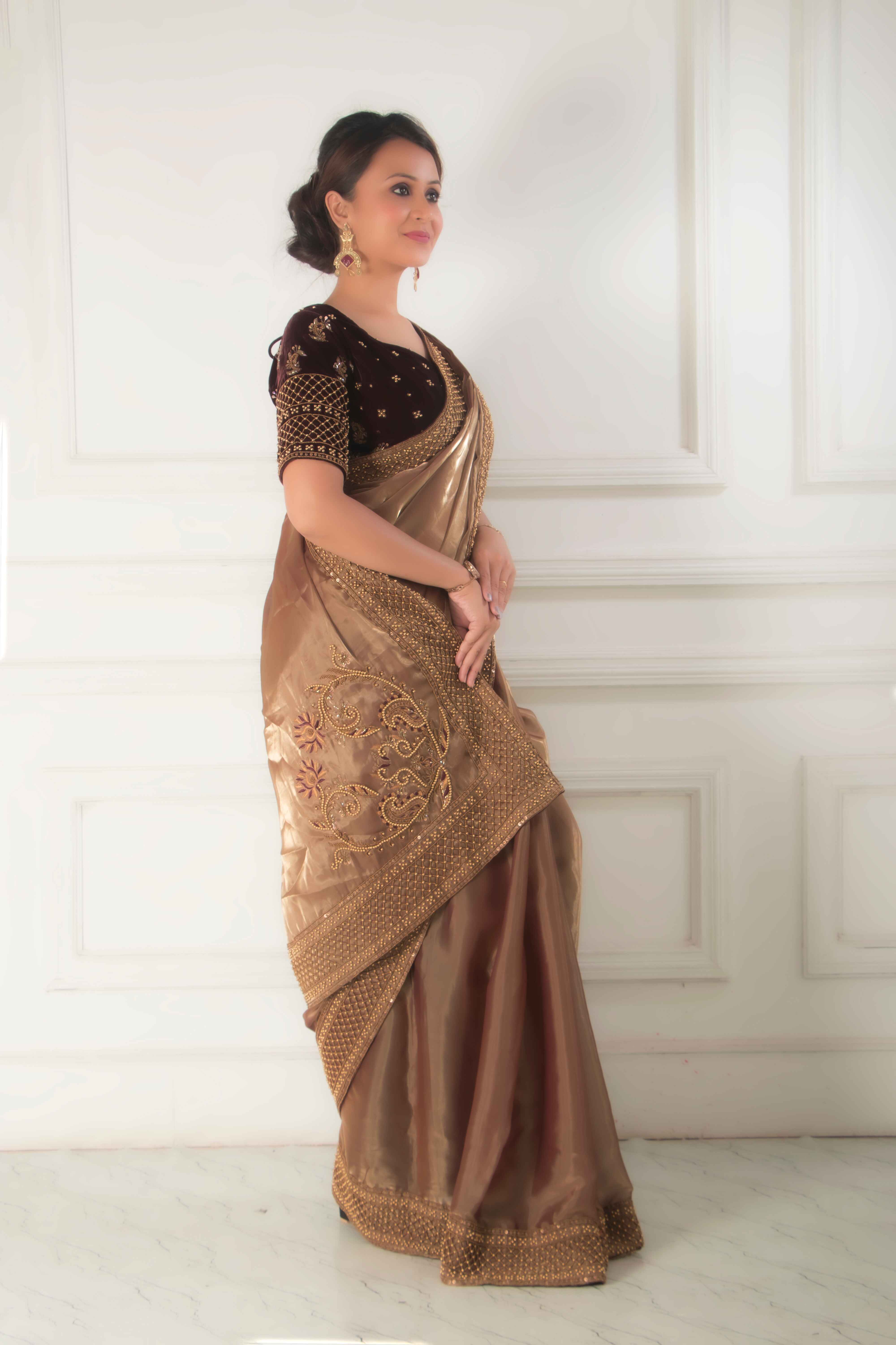 You cannot miss to hop on trend of organza saree & blouse set.