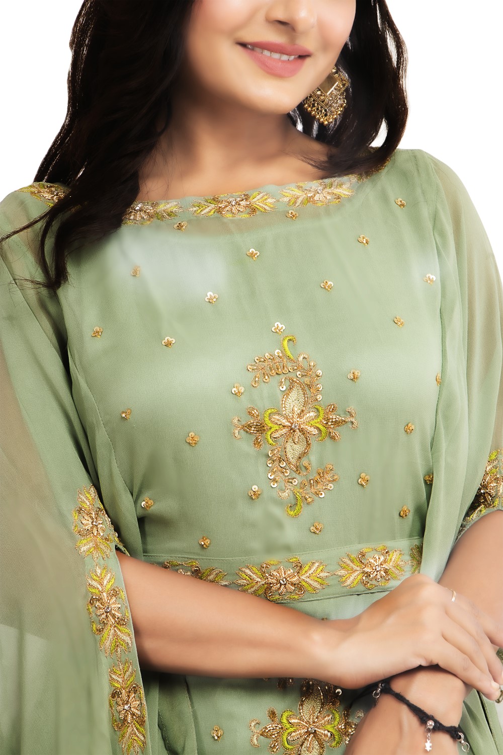 Look ultra stylish & chic with this head-turning green cocktail wear from Zariah.