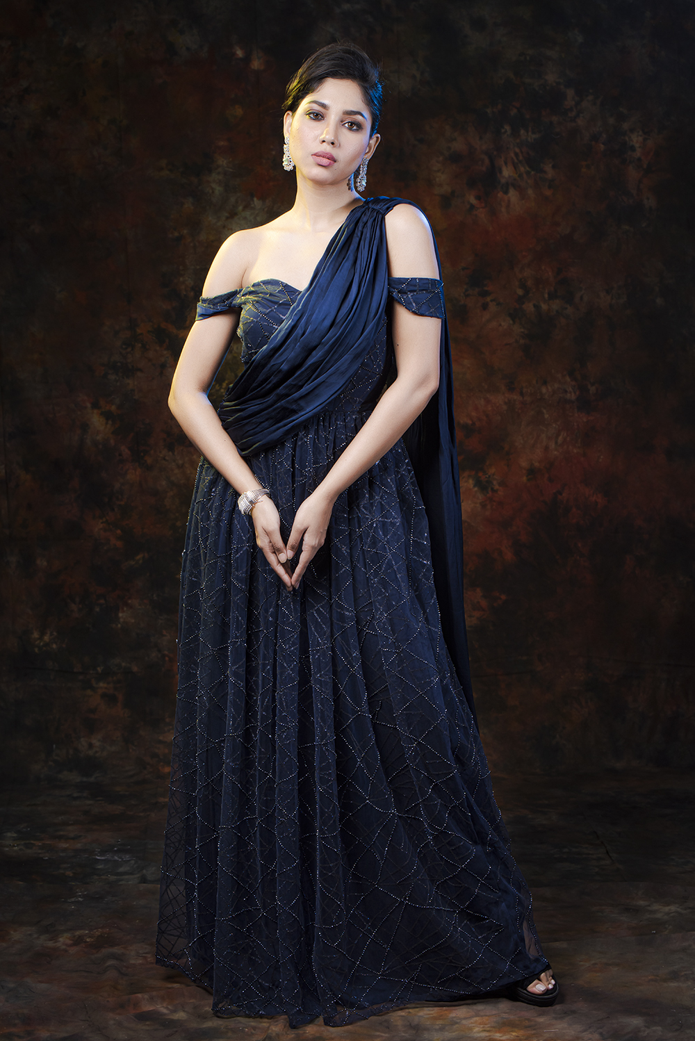 Make yourself look like an absolute diva with this lavish midnight blue gown form Zariah. This gorge...